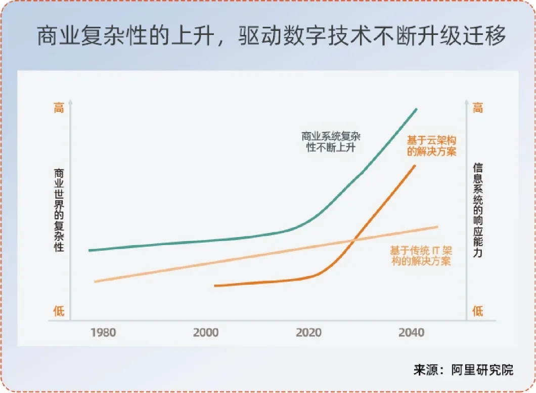 業(yè)務(wù)和管理復(fù)雜性的上升,最終帶來的結(jié)果,就是倒逼和推動(dòng)了傳統(tǒng)IT技術(shù)架構(gòu)向云架構(gòu)的遷移。這一進(jìn)程從本世紀(jì)初開始已有十年以上,在未來十年還將全面加速。隨著亞馬遜、谷歌、阿里巴巴、臉譜等巨型生態(tài)系統(tǒng)的出現(xiàn),這一進(jìn)程又得到了進(jìn)一步加速。2009年,阿里巴巴開始“去IOE”,到2013年,最后一臺(tái)小型機(jī)下線。2019年10月,亞馬遜消費(fèi)者業(yè)務(wù)關(guān)閉最終的甲骨文數(shù)據(jù)庫(kù),將存儲(chǔ)在近7500個(gè)甲骨文數(shù)據(jù)庫(kù)中的75PB的數(shù)據(jù)完成了遷移,包括復(fù)雜的采購(gòu)、目錄管理、訂單履行、會(huì)計(jì)和視頻流。這使得亞馬遜的數(shù)據(jù)庫(kù)成本降低60%以上,面向消費(fèi)者的應(yīng)用程序延遲將減少40%,切換到托管服務(wù)的數(shù)據(jù)庫(kù)管理開銷將減少70%。