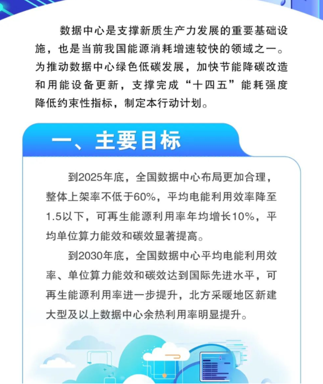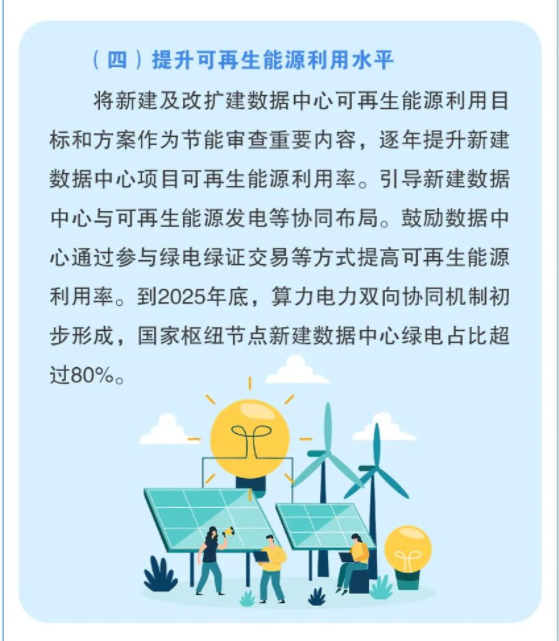 7月23日,國(guó)家發(fā)改委等四部門印發(fā)《數(shù)據(jù)中心綠色低碳發(fā)展專項(xiàng)行動(dòng)計(jì)劃》。計(jì)劃提出,到2025年底,國(guó)家樞紐節(jié)點(diǎn)新建數(shù)據(jù)中心的綠電占比需超過(guò)80%的目標(biāo)。計(jì)劃中指出,新建及改擴(kuò)建數(shù)據(jù)中心的可再生能源利用目標(biāo)和方案將成為節(jié)能審查的重要組成部分,并將逐年提高新建數(shù)據(jù)中心項(xiàng)目的可再生能源利用率。