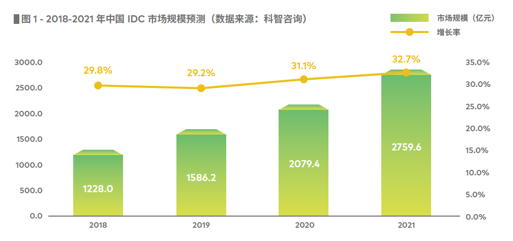 據(jù)《2019年綠色數(shù)據(jù)中心白皮書》數(shù)據(jù)顯示:當前中國數(shù)據(jù)中心每年新增投資規(guī)模在1000 億左右,包含基礎(chǔ)設(shè)施產(chǎn)品、服務(wù)器、網(wǎng)絡(luò)存儲、網(wǎng)絡(luò)設(shè)備等。預(yù)計2020 年中國規(guī)模以上的數(shù)據(jù)中心保有量將超過8 萬個,總面積將超過3000 萬平方米。