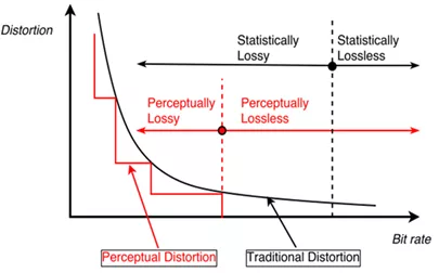 衡量圖像質(zhì)量的率失真數(shù)學(xué)模型是連續(xù)的,但其實(shí)人眼主觀感知是一個(gè)階梯性的(如圖3紅黑曲線),也就是說,圖像的畫質(zhì)降到某一個(gè)臨界點(diǎn),我們才會(huì)看的出來明顯的變化,如果看的還是一個(gè)視頻,影響會(huì)更小。
