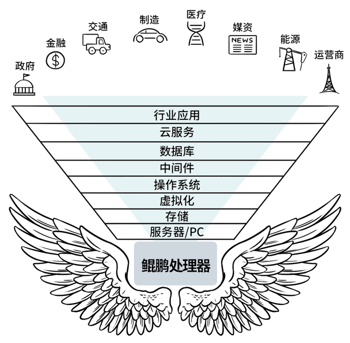 鯤鵬不再僅僅局限于鯤鵬系列服務器芯片,更包含了兼容的服務器軟件,以及建立在新計算架構上的完整軟硬件生態(tài)和云計算生態(tài)。