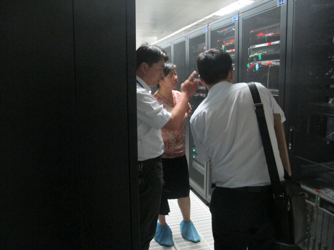 2014.8.14日石家莊市工業(yè)信息化局徐建民調(diào)研員和郭會(huì)珍信息化推進(jìn)處處長帶隊(duì)一行參觀河北聯(lián)通軟件產(chǎn)業(yè)基地互聯(lián)網(wǎng)數(shù)據(jù)中心,仔細(xì)的參觀了配電室、蓄電池室、消防值班室、油機(jī)室、IDC1號(hào)、2號(hào)機(jī)房等配套設(shè)施區(qū)域并且詳細(xì)的詢問了數(shù)據(jù)中心機(jī)房的投資、客戶、帶寬等運(yùn)營情況。徐建民對(duì)數(shù)據(jù)中心硬件建設(shè)和軟件使用情況給予了高度肯定,同時(shí)也提出了要求,希望金石機(jī)房數(shù)據(jù)中心為推進(jìn)石家莊市信息化和工業(yè)化深度融合做出應(yīng)有的貢獻(xiàn),提供高質(zhì)量的基礎(chǔ)服務(wù),為更好的發(fā)展石家莊互聯(lián)網(wǎng)數(shù)據(jù)中心企業(yè)運(yùn)用信息技術(shù)在財(cái)務(wù)決算、市場響應(yīng)、產(chǎn)品開發(fā)方面等各個(gè)環(huán)節(jié)得到明顯改善,顯著提升企業(yè)核心競爭力,在同行業(yè)中具有典型示范帶動(dòng)作用!