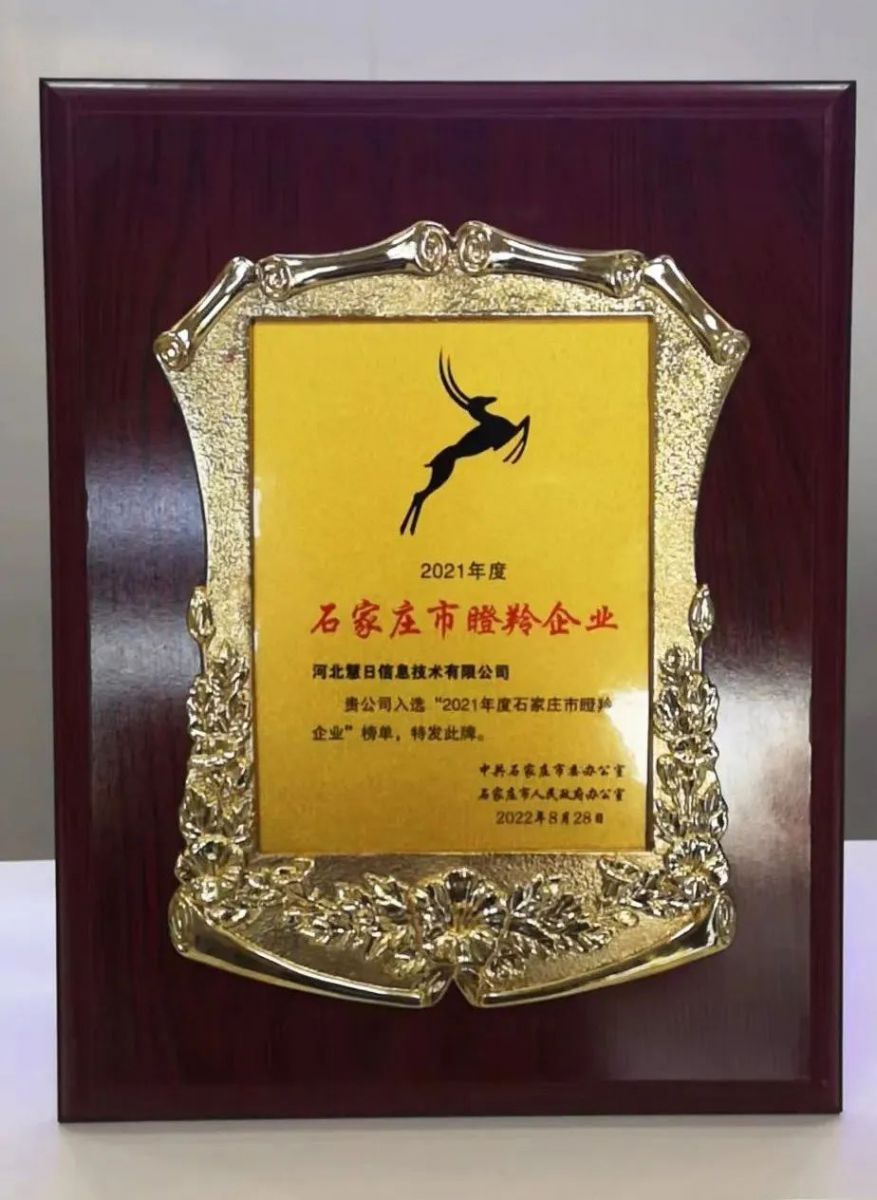 慧日云企早在2017年就已經(jīng)獲得石家莊高新區(qū)"瞪羚企業(yè)"榮譽稱號,2022年7月正式評為石家莊市“瞪羚企業(yè)”,本次入選是市政府、行業(yè)以及社會各界對慧日云企的充分肯定,慧日云企也將以此為契機,在國家數(shù)字經(jīng)濟創(chuàng)新發(fā)展大背景下,堅持開拓創(chuàng)新,以新技術(shù)、新業(yè)態(tài)、新模式為支撐,積極做好信息化、數(shù)字化服務,發(fā)揮瞪羚企業(yè)標桿作用,助力經(jīng)濟更高水平、更高質(zhì)量發(fā)展。