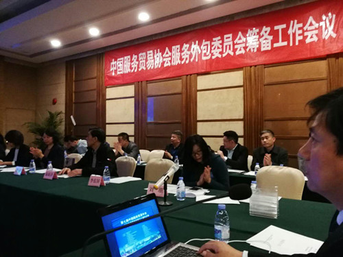 圖2潘其旺常務(wù)副會長主持中國服務(wù)貿(mào)易協(xié)會服務(wù)外包委員會籌備工作會議