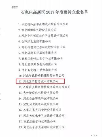 2017年度石家莊高新區(qū)“瞪羚企業(yè)”評選于2018年10月23日正式公布結果。河北慧日信息技術有限公司(以下簡稱:慧日云企)作為一家年輕的高新技術企業(yè)參與了此次評選,并成功入選。