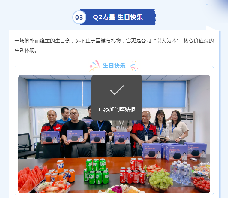 我們始終相信員工是公司最寶貴的財富,未來我們將持續(xù)創(chuàng)新員工關(guān)懷形式,豐富企業(yè)文化內(nèi)涵,努力營造更有溫度、更具活力、更富歸屬感的工作環(huán)境,讓每一位伙伴都能在這里快樂工作、幸福生活、共同成長!